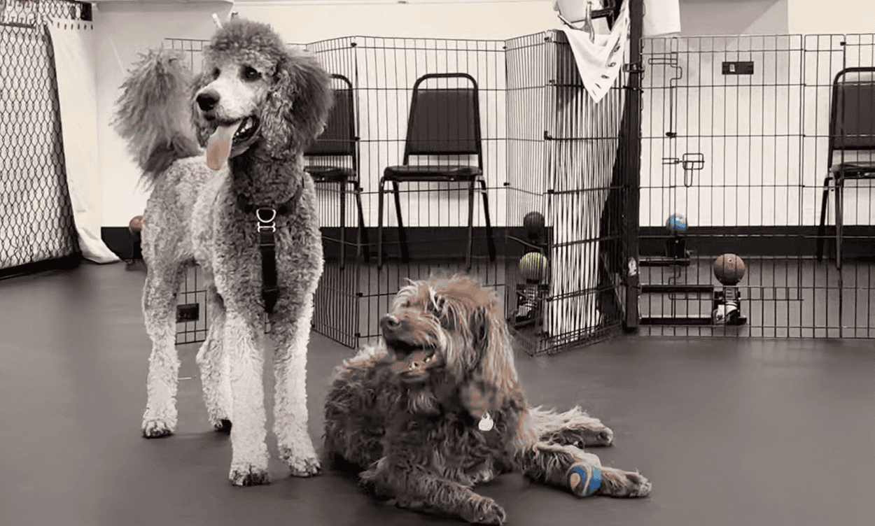 Smooth, durable flooring in a dog training or grooming facility.